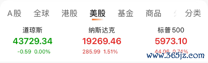 美东时间11月7日周四,美股三大指数收盘涨跌不一。道指平收,微跌0.59点,报43729.34点;纳指收涨285.99点,涨幅1.51%,报19269.46点;标普500指数收涨44.06点,涨幅0.74%,报5973.10点。